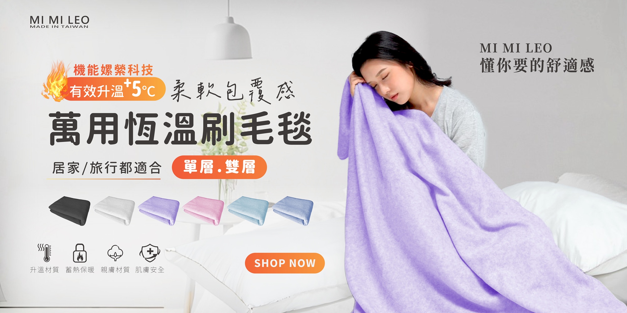 MI MI LEO 台灣製升溫刷毛萬用毯,柔軟厚實、觸感細膩,一蓋上就能瞬間感受到那種從肩膀一路暖到心裡的舒適。