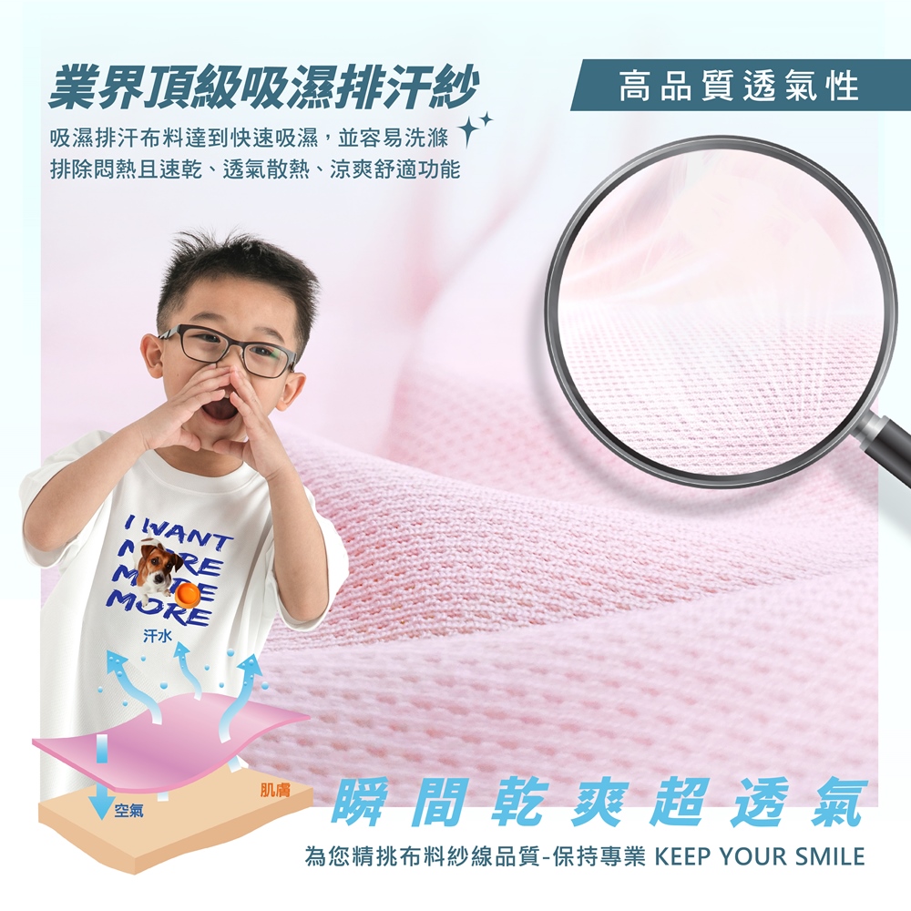 材質 · 100%聚酯纖維,舒適、彈力、高品質、吸濕排汗、透氣、涼爽