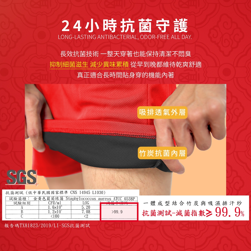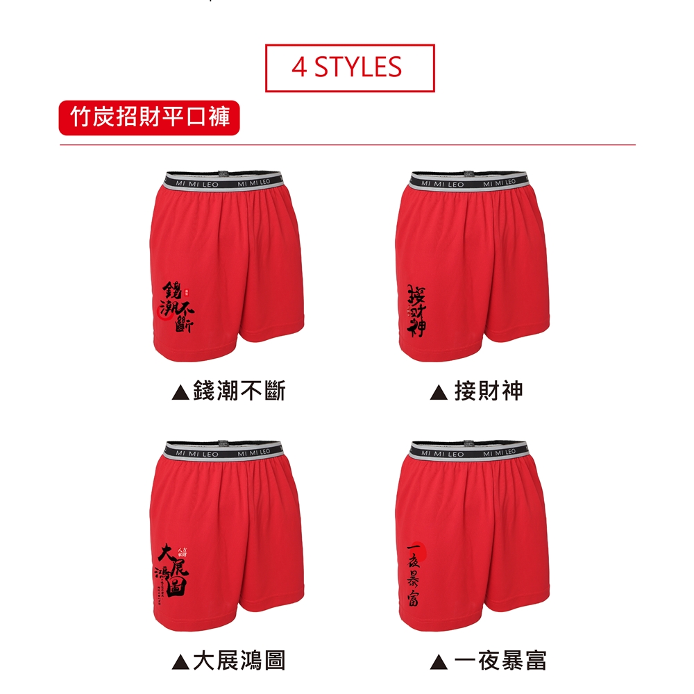 祖雄同款 4件組-台灣製男性竹炭招財紅內褲-四款任選 招財 接福 加大尺碼