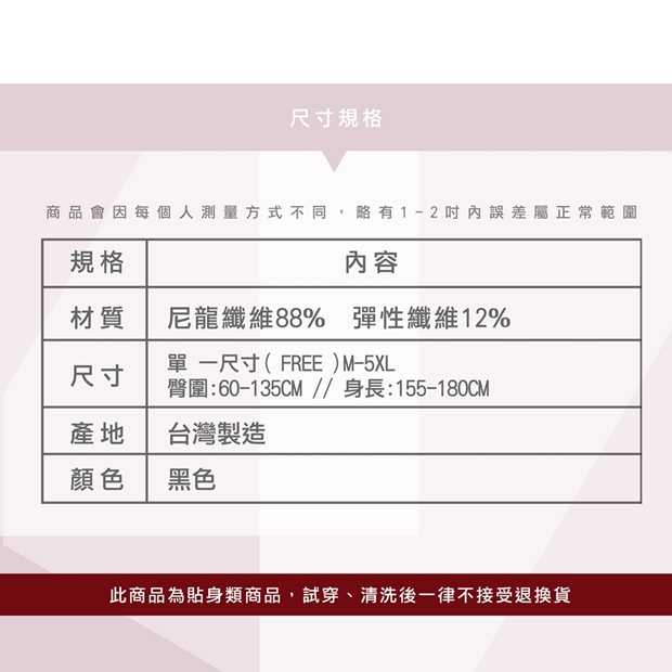 臀圍:50-124CM ;身長:155-175CM